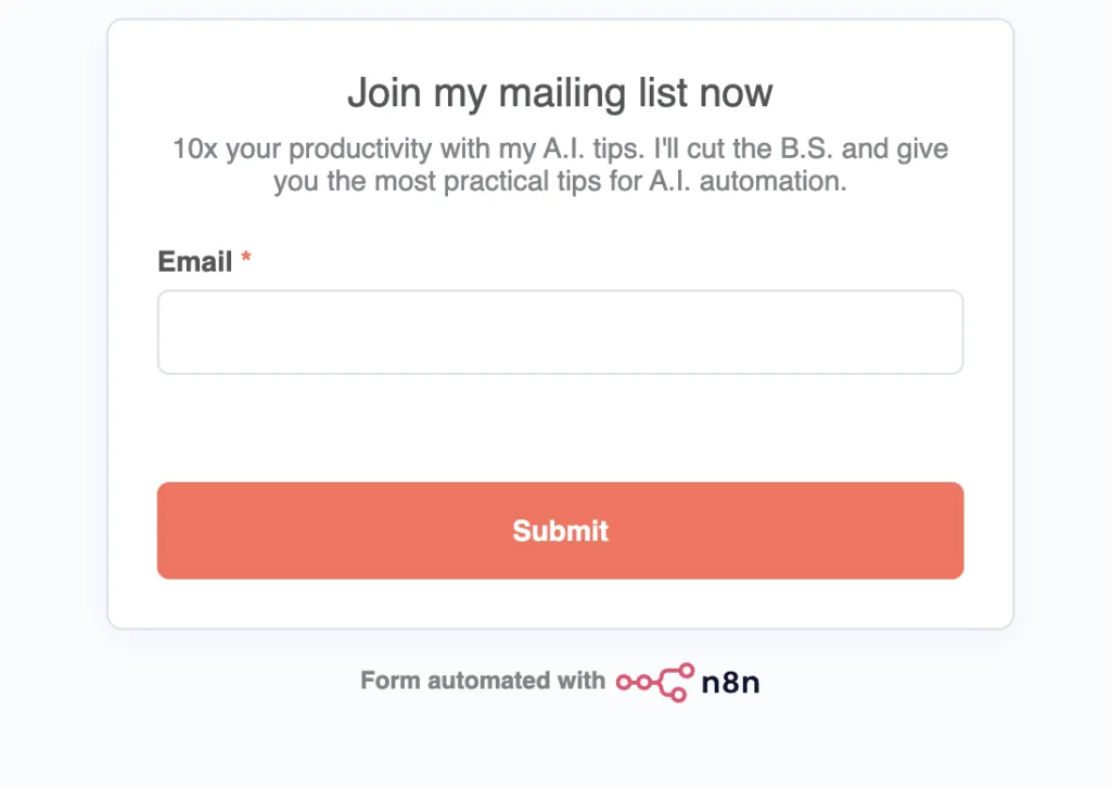 Another potential issue is the n8n watermark that appears on the bottom of every form. While it’s a small price to pay for a free service, it can still be a drawback for businesses that prioritize a seamless, branded experience. The watermark can be distracting and may detract from the overall professionalism of your website or landing page.
