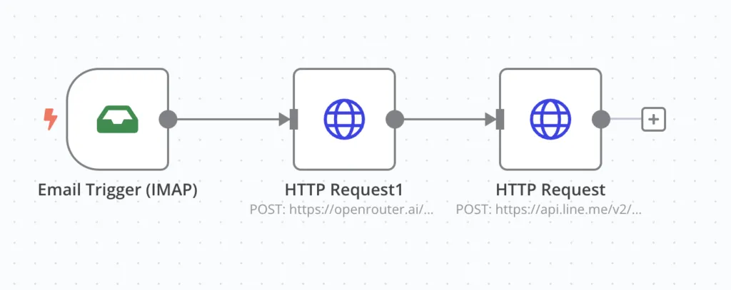 First, I connected my email account to n8n. I use IMAP because IMAP is just for reading the emails. I’m using Google and the problem with using SMTP is that although I can send emails, every 30 days I need to log into Google and renew my API keys. IMAP, I can just set and forget. -