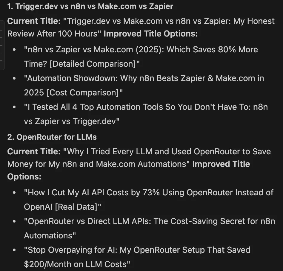 The next step was to identify patterns in high-performing titles. Windsurf has a “pattern recognition” feature that analyzes top-performing titles to identify common elements.
