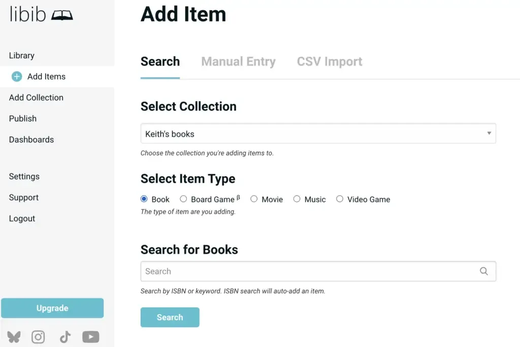 Setting up Libib took less than a minute. I created an account and was ready to go.