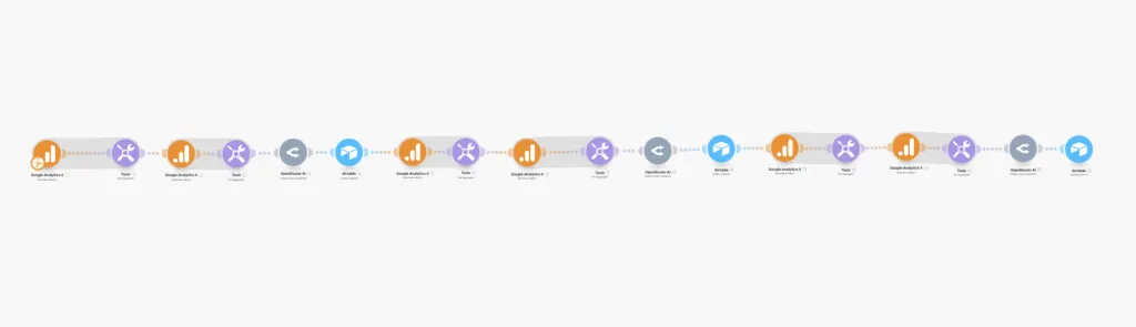 I decided to automate the process. Using n8n and make.com, I created a workflow that changed everything. It pulls Google Analytics data, compares it to last week, and gives me actionable insights.