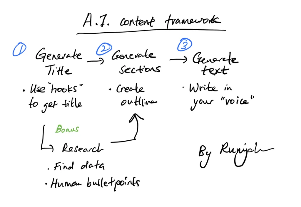 Generate text - This is the final part. The A.I. generates text for each header instead of 1 giant piece, it generates better output if you split it into mini articles that add together.