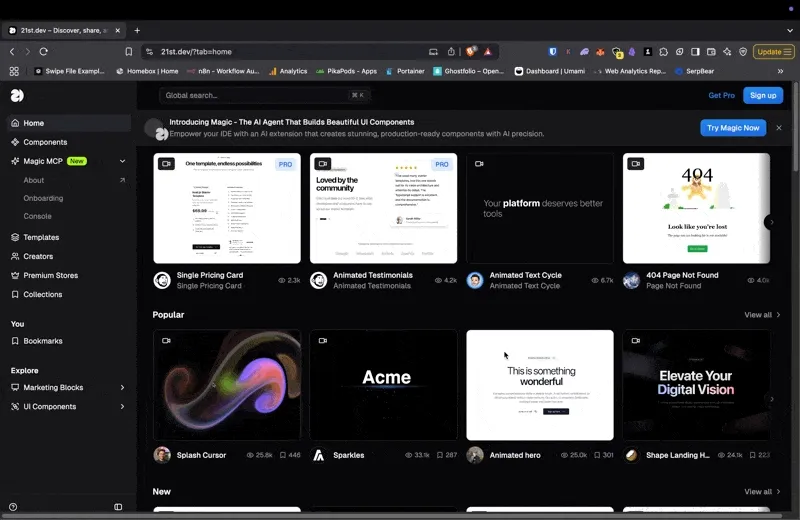 Combine with Uiverse components: Use 21st.dev for the overall structure and Uiverse.io for the interactive elements.