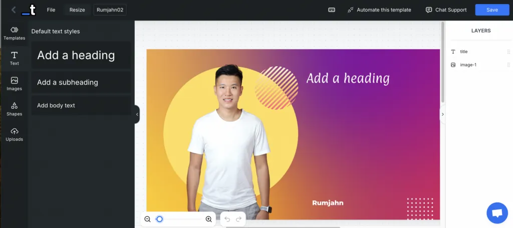 I found it helpful to create my initial designs in Canva. Then I imported them into Templated.io. This gave me the best of both worlds: Canva’s user-friendly design tools and Templated.io’s automation capabilities.