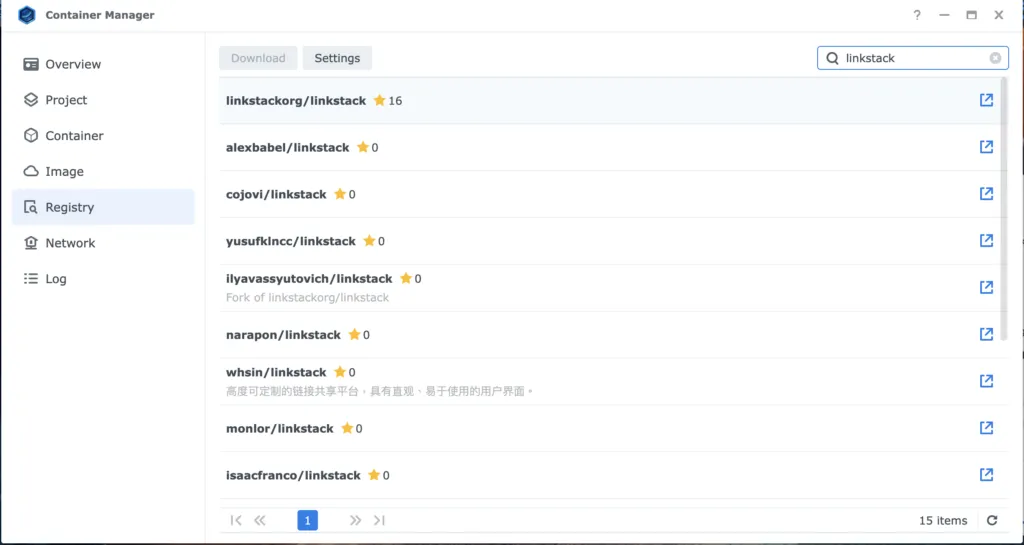 Getting LinkStack up and running on your Synology NAS is straightforward. Launch Container Manager from your DSM interface and click “Registry.” Search for “linkstack” and download the official image.