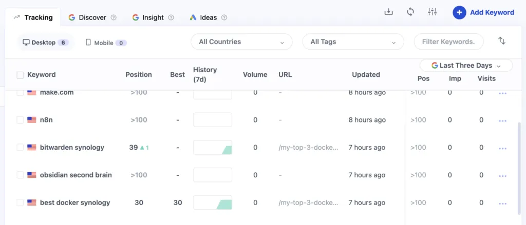 I monitor 500 keywords across my sites. With paid tools, this would cost $100+ monthly. With Serpbear, it’s free.