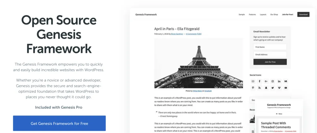 🔹 The Genesis Framework by StudioPress is a top choice for businesses due to its speed, SEO tools, and regular security updates, all for under $60.