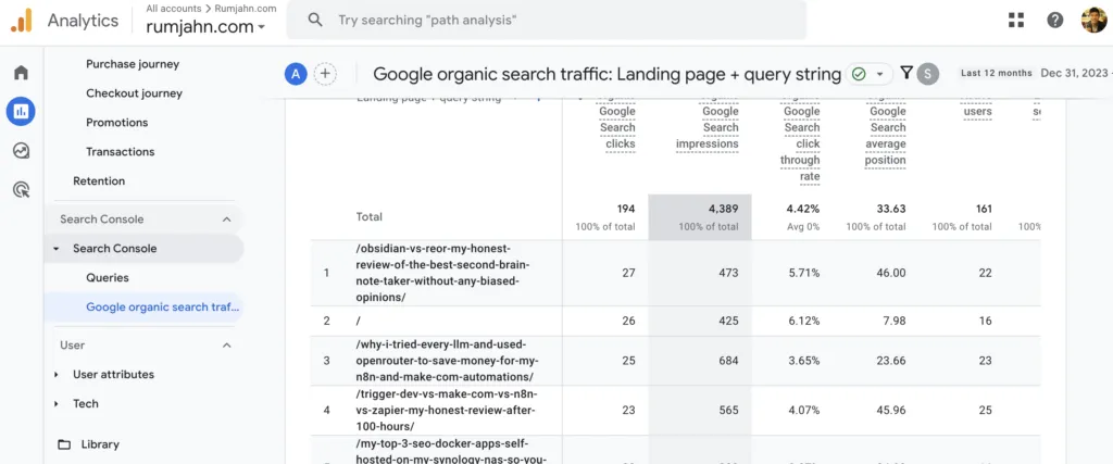 “I’m giving you Google Analytics data about traffic to the Rumjahn blog, can you analyze?”
